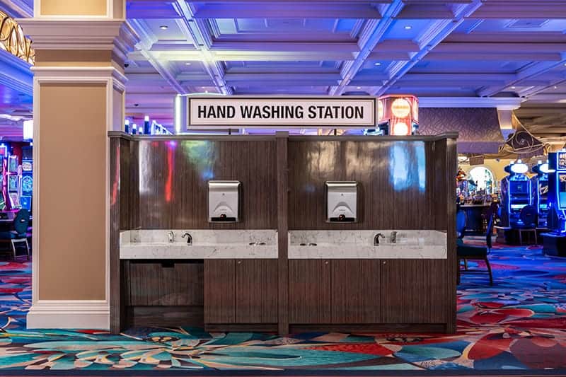 - Standalone handwashing stations designed by MGMResorts located on casino floors