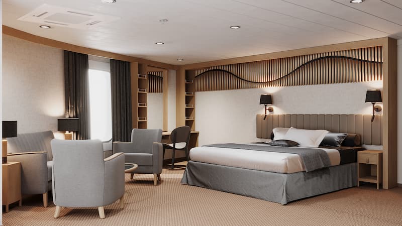 - Cabin Refurbishments: A total of 19 Arctic Superior cabins will be completely renovated, including updated bathrooms. Additionally, 14 Expedition Suites and six Expedition Grand Suites will be fully refurbished and will now offer a twin-bed configuration option.